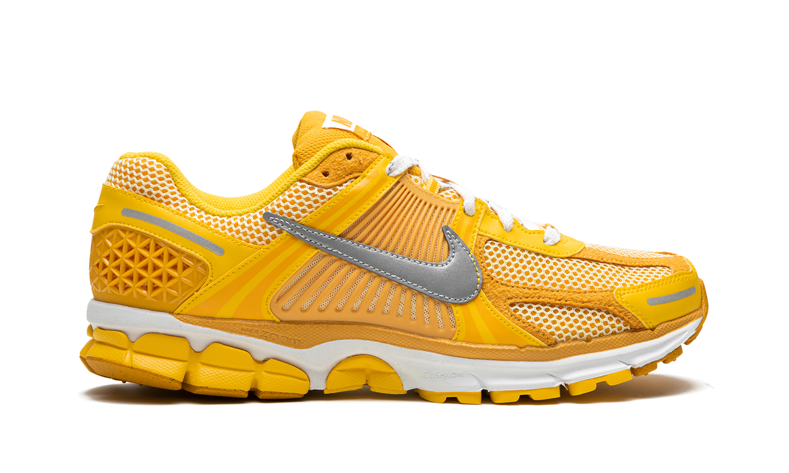 The Nike Zoom Vomero 5 “Varsity Maize” is a head-turning yellow colorway of the classic performance shoe that was originally released in 2010. The Zoom Vomero 5 was re-introduced as a lifestyle shoe via a collaboration with Samuel Ross’s *A COLD WALL clothing brand in 2018, and again beginning in 2022 thanks to colorways like the “Varsity Maize.” The upper features a white mesh construction in Laser Orange with Varsity Maize overlays throughout the design. A Metallic Silver leather Swoosh appears on both sides of the shoe. “Nike Vomero 5” branding is found on the tongue. The shoe features Zoom Air cushioning within its foam midsole for all-day comfort.