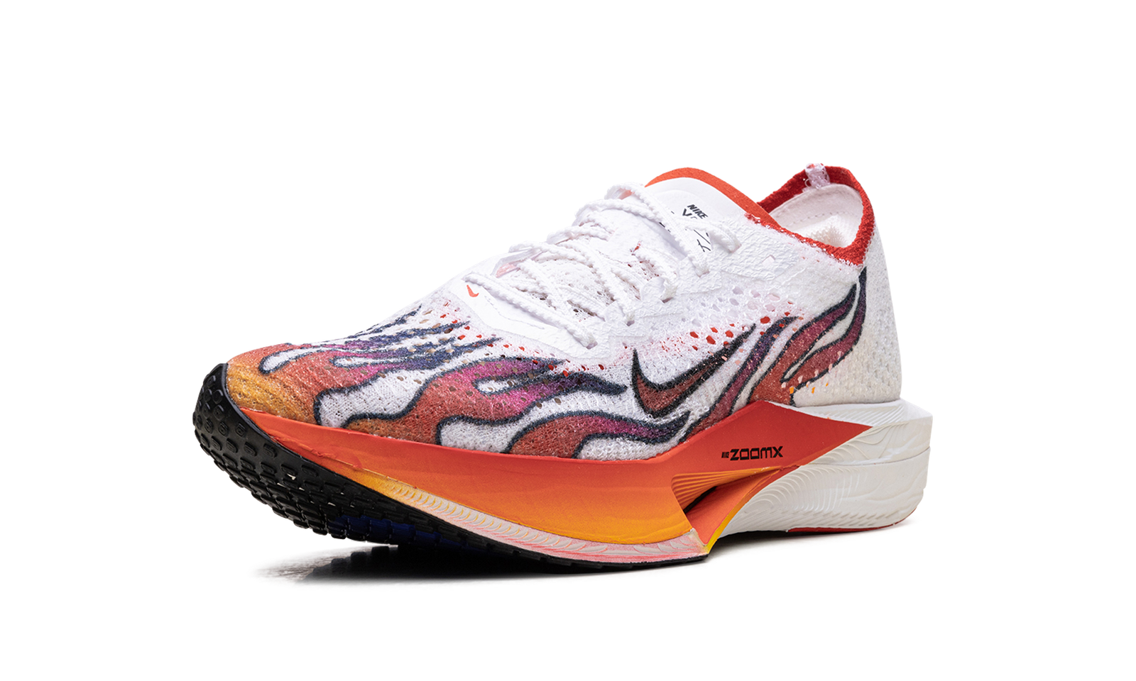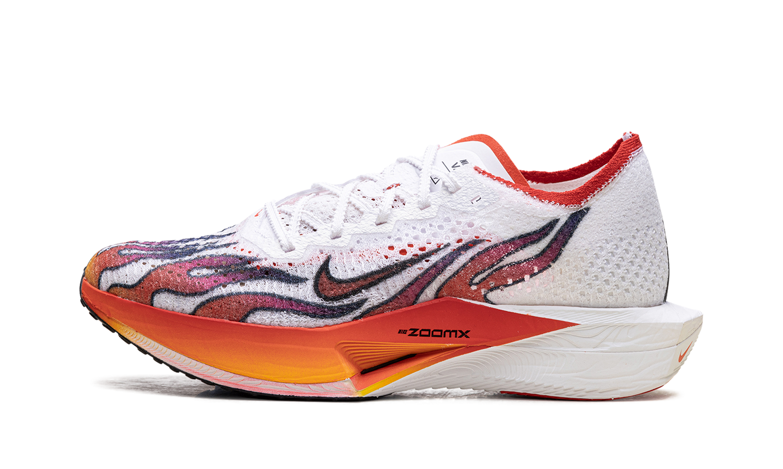The style code HQ3504-100 is for the Nike ZoomX Vaporfly 3 Men’s Road Racing Shoes in the ‘White/Habanero Red-Black-University Red’ colorway, commonly known as the ‘Ekiden Pack’ edition. This premium racing shoe is part of a collection that celebrates the Japanese long-distance relay race tradition.